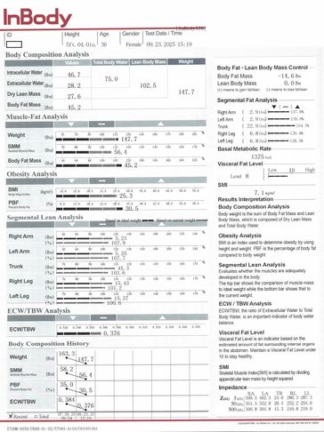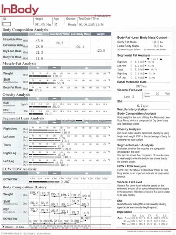This InBody shows a 40 year old female who lost 28lbs & 6% of body fat through the Tri-Health Eubiotic Diet - call us to learn more!